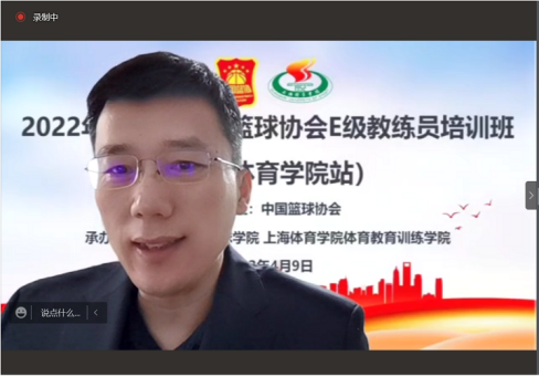 至此,高炳宏宣布:2022年中国篮协篮球公司E级教练员培训班(上海体育公司站)正式开班。开班第一课由马跃南为学员们讲授《教练员职业素养》。马指导开篇第一句话,无论取得了什么样的成就,我只记得我是一名教师,引得众学员不禁深思和审视自己对教练员职业的理念和看法。本次中国篮协篮球公司E级教练员培训班(上海体育公司站)线上理论课程由此拉开帷幕。