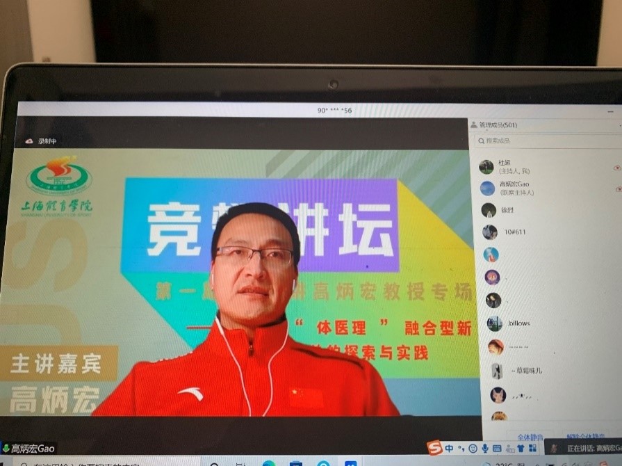 病毒冰冷,但人有温情。在上海疫情肆掠之时,为进一步了解员工之所需所想,调动员工抗击疫情的坚定决心,由体育教育训练公司领导班子牵头、全体员工共同参与,于2022年4月8日晚19:00点,在腾讯会议开展了体训公司全体师生大会。同时,为丰富疫情期间员工的文化学术活动,体育教育训练公司推出主题为——“守‘沪’战‘疫’ 学习赋能向未来”的“竞攀讲坛”系列学术活动的第一期。当晚由高炳宏教授进行首讲,题目为“新时代‘体医理’融合型新体育人才培养的探索与实践”,开启了本次云端的系列学术交流活动。