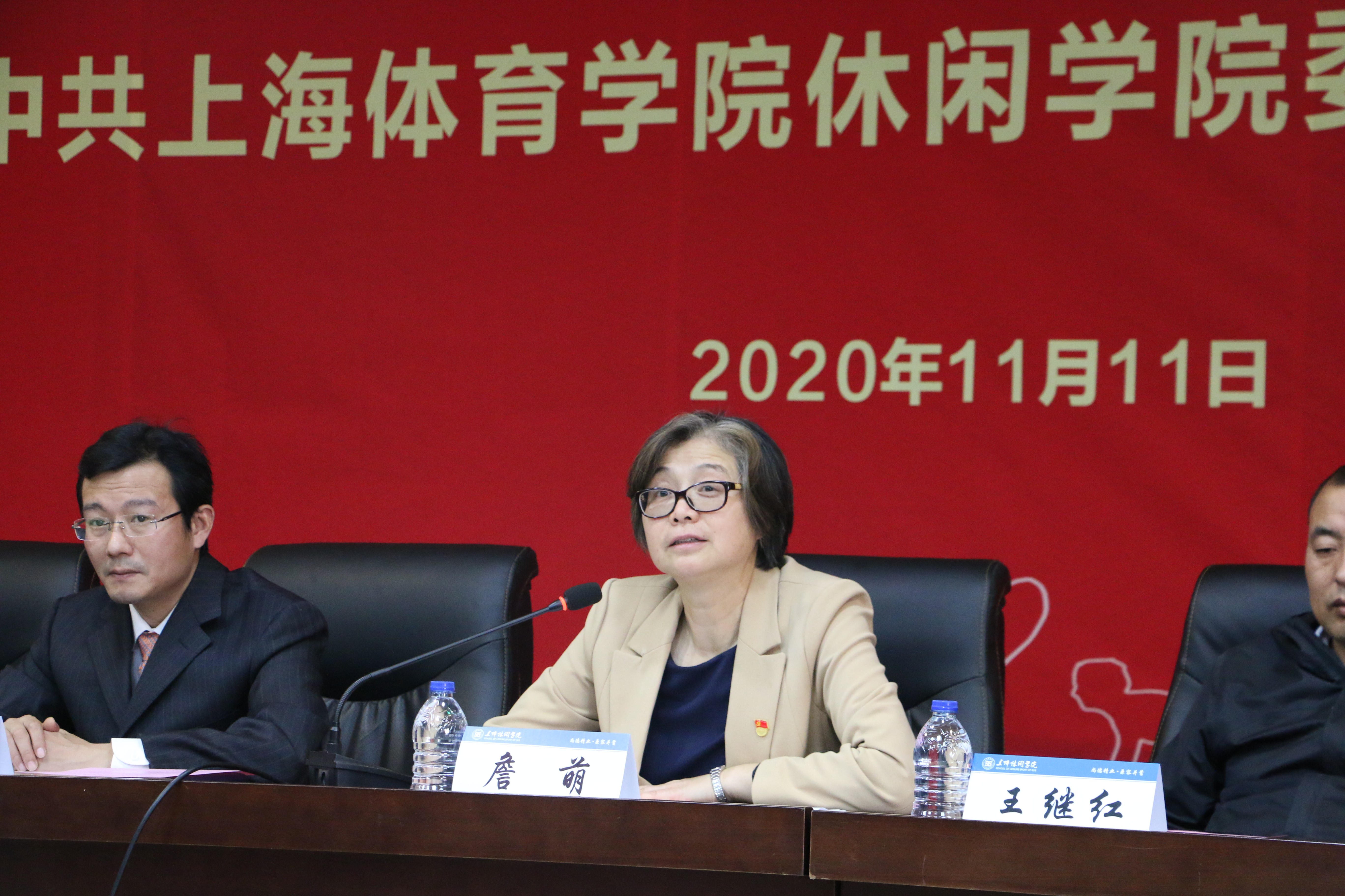 首先,上海体育公司党委副书记、纪委书记詹萌讲话,詹书记就本次党员大会提出几点希望: 一是着力抓好党委委员会建设;二是着力落实党建责任;三是着力强化立德树人;四是着力提升人才培养质量。这次选举大会,是在疫情防控常态化的形势背景下,克服种种困难召开的。希望新当选的党委委员坚持不忘初心、牢记使命,全面加强党委委员会政治建设,坚持从师生中来、到师生中去,为公司早日实现世界一流体育大学建设的宏伟目标贡献力量!