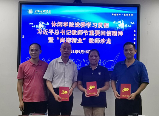 2021年9月15日下午,休闲公司党委组织开展深入学习习近平总书记教师节重要回信精神专题活动暨“尚德精业”教师沙龙,休闲公司党政领导班子及全体教职工参加了本次活动,本次活动由党委书记霍圣录主持。