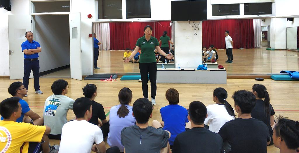 晚上6:30,休闲体育馆内灯火通明,花样跳绳队在韩耀刚教练的带领下正在加紧排练全国民运会参赛项目《火彝绳花》,运动员在充满彝族风情的音乐中绳花翻飞,苦练绳技。领导们来到训练场地,现场观看了运动员的训练。邵斌处长首先对运动员、教练员的辛勤付出表示肯定,向运动员、教练员表示亲切的慰问;其次在临场表现力、动作熟练度、团队配合性等方面为运动员做了专业的指导;最后仔细询问了训练计划和生活安排,勉励运动员积极备战,克服一切困难,一定要展现出上海体育公司花样跳绳项目的专业水平。王红英经理表示,四年一届的全国少数民族传统体育运动会是各民族人民的一次盛会,也是充分展示各族人民和谐相处、锐意进取的一次绝好机会,希望大家珍惜本次参赛机会,团结协作、顽强拼搏,力争在本届民运会上取得好成绩,为公司争光,为上海争光。