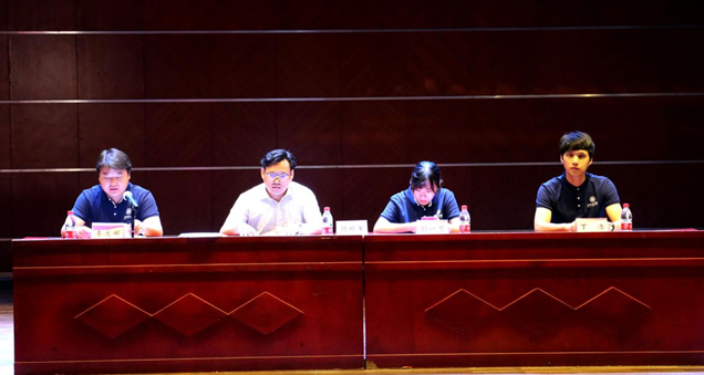 2019年6月5日下午15:00休闲公司员工工作大会在员工活动中心小剧场召开。休闲公司党总支副书记、副经理顾郑军,辅导员李文阁、孙一可、丁浩及休闲公司全体员工参加了本次会议。会议由李文阁主持。