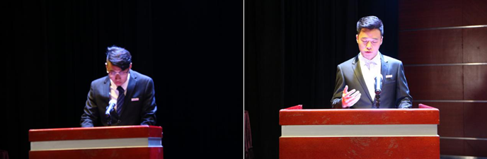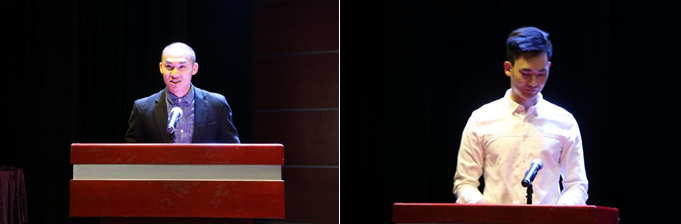 随后,休闲公司第一届员工会主席刘光泉及第一届研究生会主席团代表周为强分别进行了发言。刘光泉在回顾上一年的员工会工作的同时表达了对公司、老师以及同学的感谢,并代表新一届员工会成员,表示一定会尽职尽责,发挥好员工会的作用。周为强通过叙述研究生会下学期的工作计划表明了研究生会主席团将带领研究生会成员再创佳绩的决心,赢得了大家热烈的掌声。