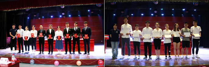 紧接着,本科18级辅导员丁浩,研究生、本科生16级辅导员孙一可分别为老一届团总支、员工会主席团和研究生会主席团及各位部长颁发荣誉证书。