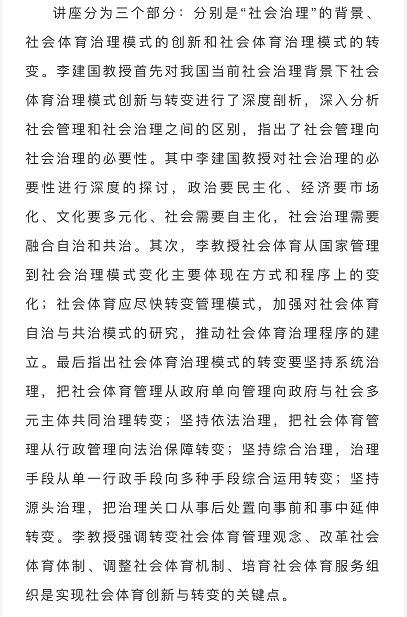《学科前沿动态》第六讲——社会治理背景下社会体育发展模式的创新与转变