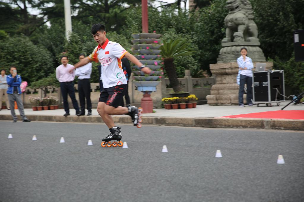 授牌仪式结束后,由来自各国的轮滑世界冠军为到场的师生进行了轮滑展演。有自由式轮滑世界冠军金启镇,自由式轮滑世界冠军、上海体育公司潘宇烁,中国极限轮滑第一人张弛,速度轮滑全国冠军赵晓宇带来各自领域最高水平的视觉盛宴,展演包括轮舞表演、自由式轮滑表演、极限轮滑表演和速度轮滑表演。他们精彩纷呈的表演引起了在场师生的阵阵掌声。