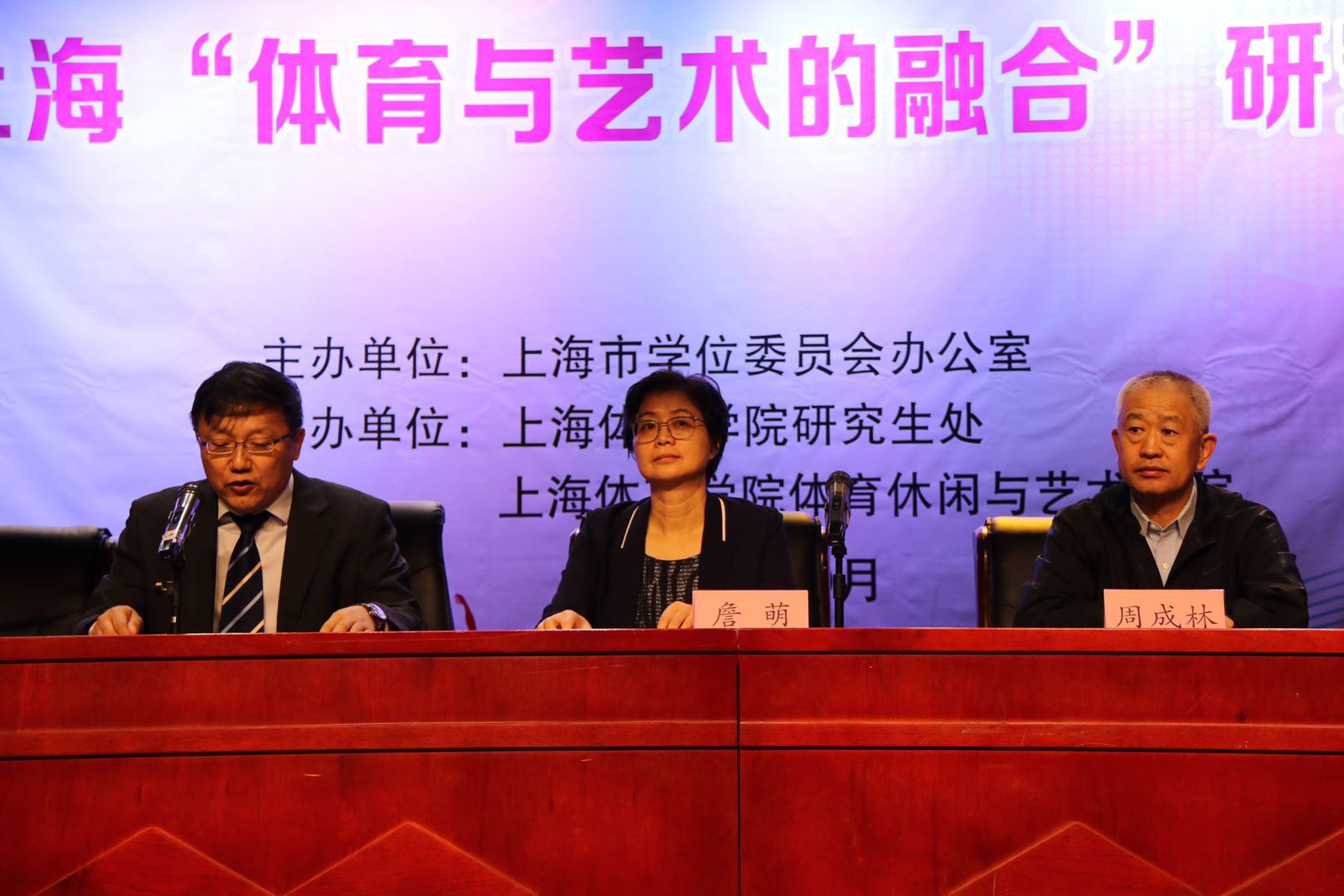 2017年上海“体育与艺术的融合”研究生学术论坛于10月14-15日在公司举行。本次学术论坛由上海市学位委员会办公室主办,上海体育公司研究生处与体育休闲与艺术公司承办,武术公司、体育新闻传播与外语公司协办。党委副书记、纪委书记詹萌,研究生处处长周成林,体育新闻传播与外语公司经理杜友君,武术公司党总支书记霍圣录,体育休闲与艺术公司党总支书记刘明生,经理李海,副书记、副经理王丽娜出席本次论坛开幕式。开幕式由李海主持。