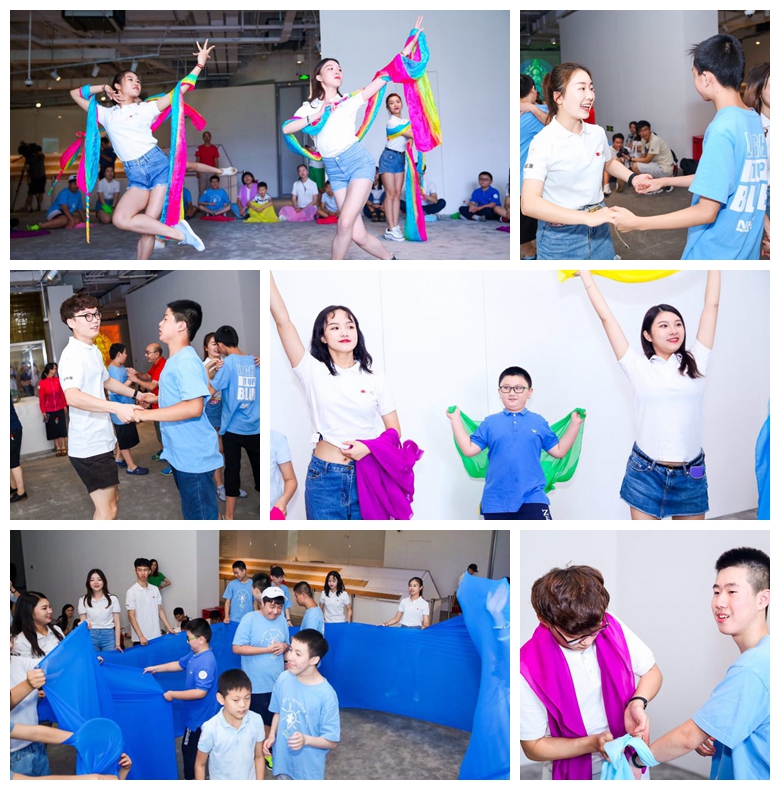 7月23日上午,中国第一高楼上海中心大厦举办的丝路敦煌文化艺术展迎来了一批特殊观众,几十名来自上海市彩虹雨儿童智能训练中心的自闭症儿童在休艺公司“星希望”自闭症儿童舞蹈治疗暑期社会实践志愿者们的陪同下,共同参与“幸福生存-丝路敦煌公益融合夏令营”,感受丝绸之路敦煌文化的魅力。
