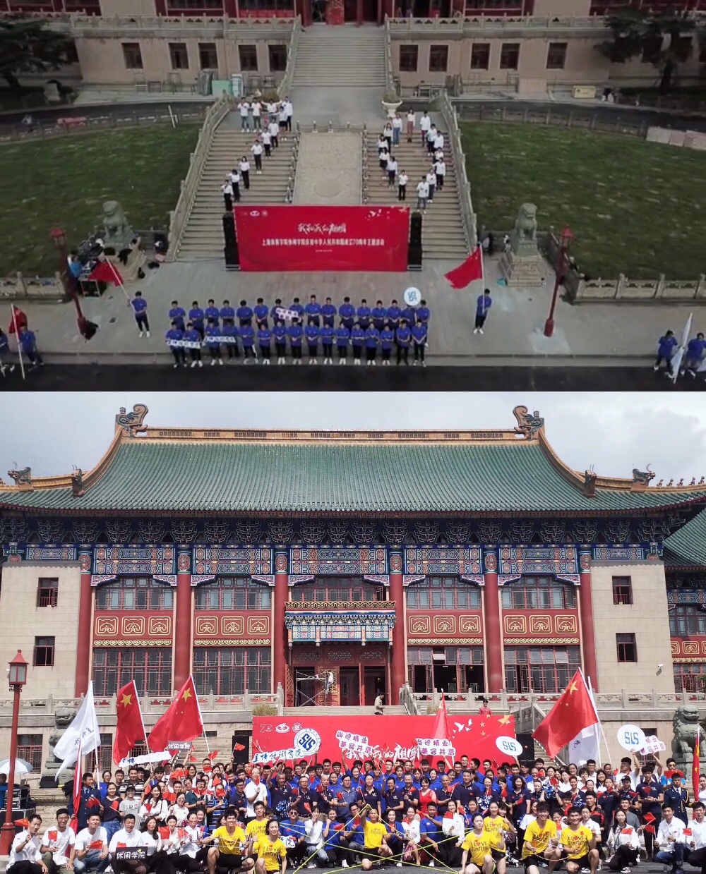 此次快闪虽然只有短短15分钟,但是却振奋着每一位绿瓦学子的心,佩戴党员徽章的党员员工站成“70”数字的队形,想用这种新颖的方式共庆新中国七十华诞,我们青年党员心中有信念,为着祖国的发展而努力奋斗。快闪的最后,在场的所有师生大声呼喊出心中祝福:祝伟大的祖国,生日快乐,繁荣昌盛!