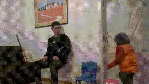 家长马步支撑在墙上,因地制宜摆几个大小不一的椅子,让孩子依次翻越椅子障碍。