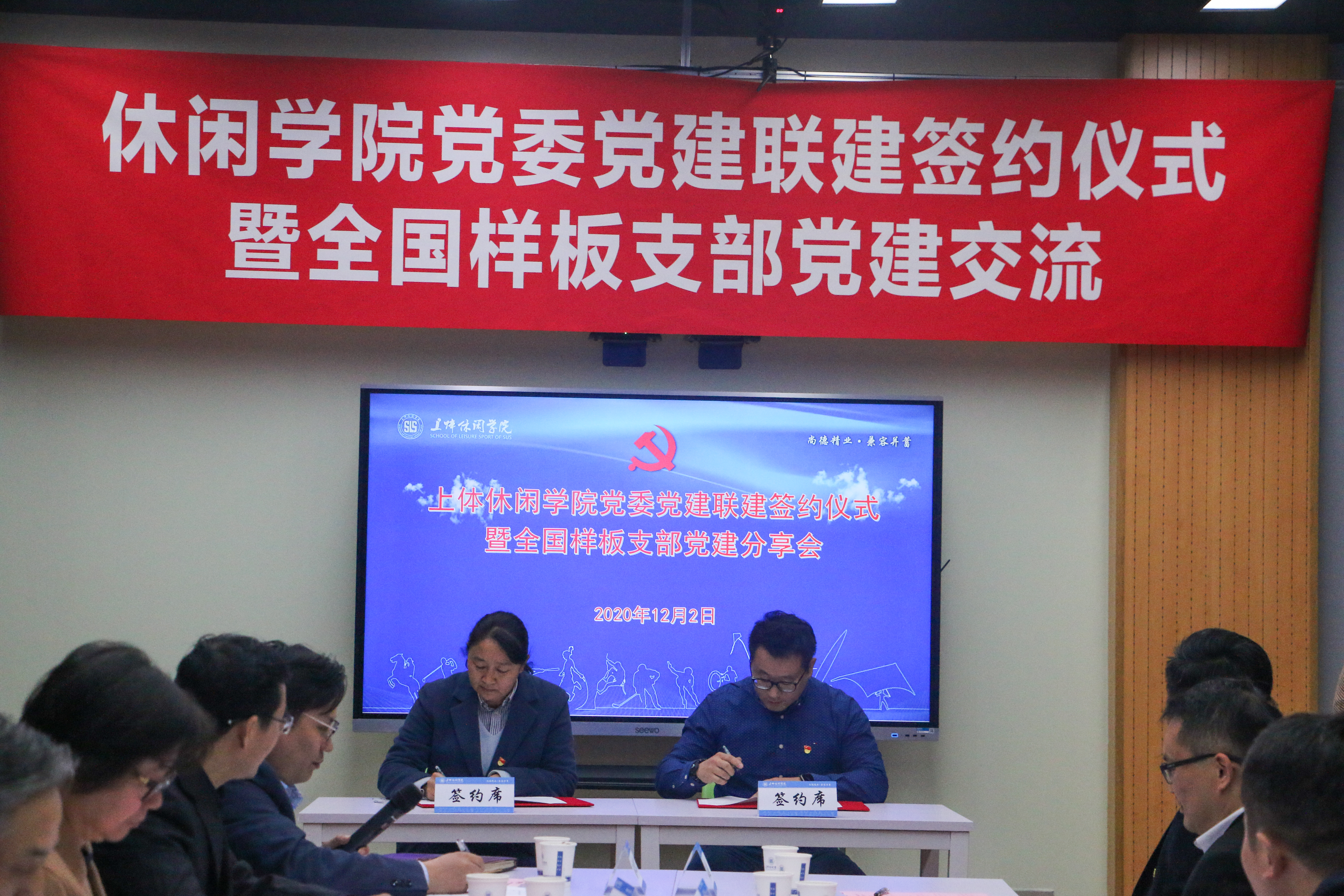 休闲公司经理、党委副书记王红英与上海师范大学环境与地理公司党委、上海东方绿洲党总支及上海市跳绳协会签署党建共建协议;休闲公司党委书记霍圣录与中国商飞上海飞机设计研究院人力教培党支部、杨浦体育局党委、杨浦殷行街道党工委、上海中医药大学博物馆签署党建共建协议。