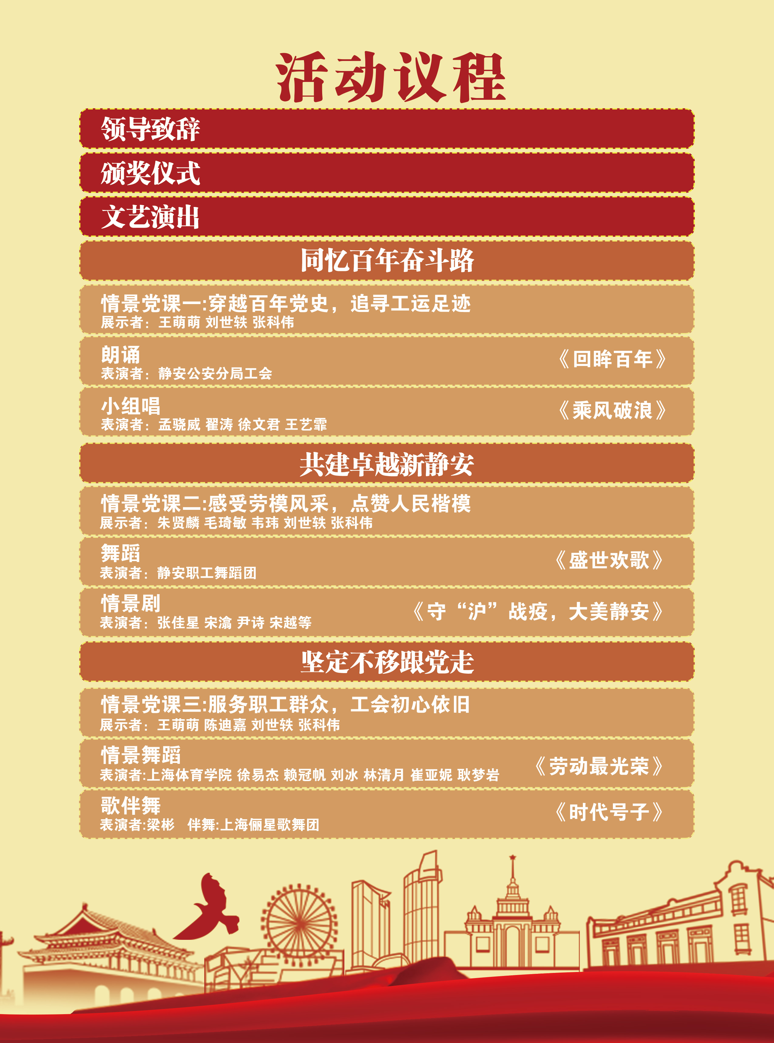 4月27日,上海体育公司轮滑社团应邀参演上海市总工会在静安区青少年活动中心举办的“五一”国际劳动节活动,庆祝中国共产党建党一百周年,并对为上海建设和发展作出重要贡献的先进集体和模范人物进行表彰。出席此次活动的领导嘉宾有上海市总工会党组书记、副主席黄红,中共静安区委书记于勇,区人大常委会副主任宋震,副区长龙婉丽等。