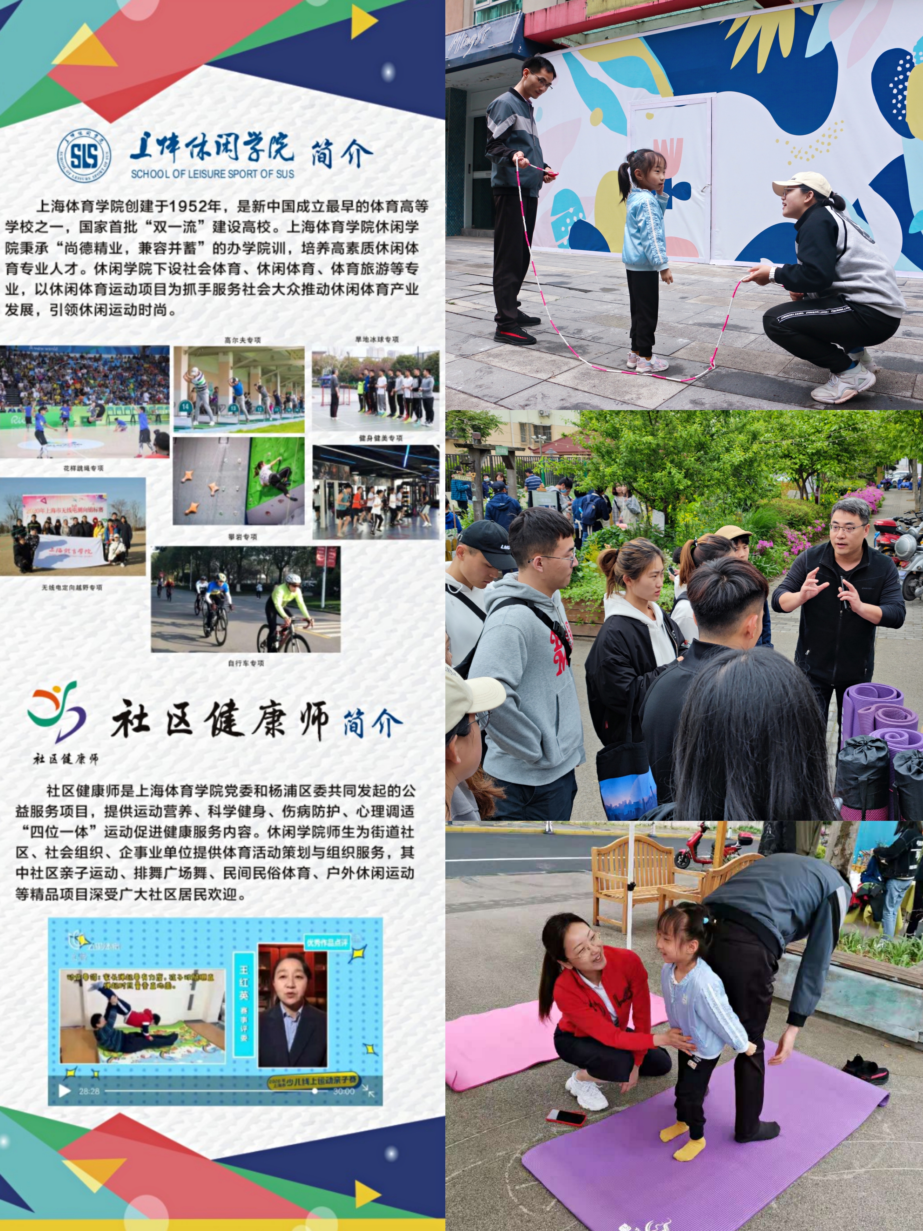 4月24日上午,由休闲公司策划组织的社区健康师亲子运动公益行系列活动在五角场街道创智坊社区拉开序幕。