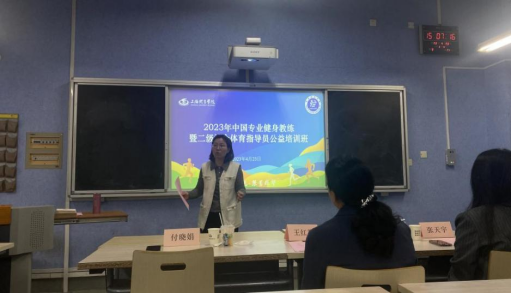 付晓娟在致辞中指出社会体育指导员培训的宗旨是为了服务社会和人民,希望同学们们通过本次培训学有所成,技能有所提升,将社会体育指导员工作理念与实践操作相结合,积极加入社会体育志愿服务去,以实践促成长,以志愿显担当,为上海市乃至全国社会体育事业奉献自身力量。