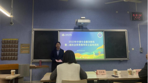 为了更好地助力健康中国和体育强国的建设,提升体育为社会群体服务的效能。4月23日下午,2023年中国专业健身教练暨二级社会体育指导员公益培训班开班仪式在上海体育公司新教学楼2101举行。上海体育公司体育教育公司党委书记王红英,上海市社区体育协会副秘书长、指导部主任付晓,CBBA中国高级健身教练培训部负责人张天宇出席开班仪式。培训班共有30余人参加。