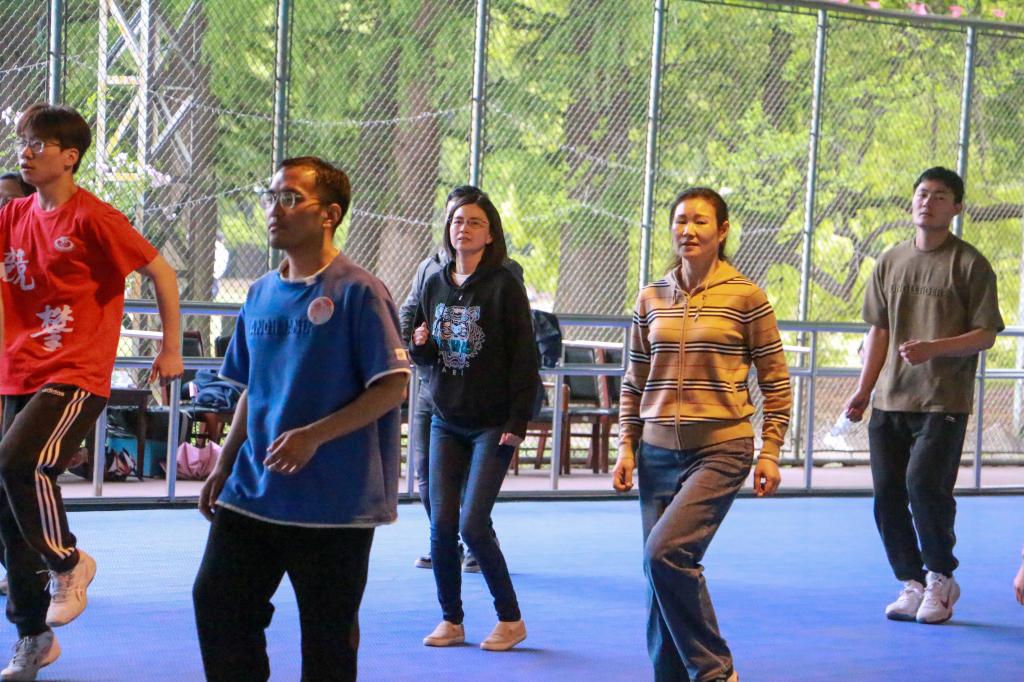 体教公司党员教师和入党积极分子共同参与了公益教学活动,本次公益教学的排舞曲目是《奋斗吧中国》。体教公司党委书记王红英、休闲社体团队教师陆莉萍、刘东宁、杨乔博参加了本次活动。公益教学活动在上海共青森林公园香樟广场和溜冰场举行。