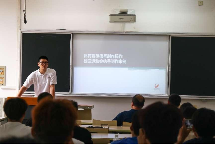 会前,五星体育导演以《体育赛事信号制作操作—以校园运动会信号制作为例》为题,为20年级和21年级社会体育指导与管理和休闲体育专业的员工做了现场教学。