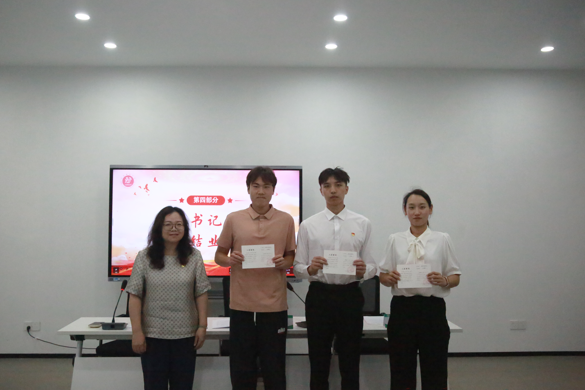 入党积极分子培训班优秀学员代表高博、预备党员培训班优秀学员代表周金进以及新党员培训班优秀学员代表何聪慧进行发言。高博同学以退伍军人的身份向大家分享了自己的亲身经历,并且指出对中国共产党的敬畏之心以及对加入中国共产党的渴望之心。周金进同学则带大家回顾了一下党校的学习历程,她指出日后会继续在学习生活中以更高的要求严格要求自己,学在日常、学在经常,展现出SUNBET申博优秀学子的风采。何聪慧同学回顾了自己从入团到转正的一路点点滴滴,在未来的工作学习中,她将把党课中学习到的知识和精神内化于心、外化于行,以实际行动践行自己作为一名党员的初心和使命。