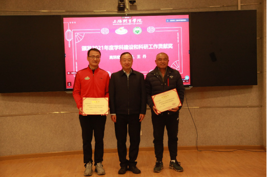 为鼓励和感谢公司教师为公司建设一年来的支持与贡献,会上举行了隆重的表彰仪式。陈佩杰为谢陶、刘善德、夏春、赵传杰、马俊明、高学民颁发体训公司2021年度教学育人贡献奖;徐烈为种法鹏、柳志刚颁发2021年度党委工作先进个人;徐烈为卢志泉、张震、杨旻晔颁发2021年度就业工作先进个人;曹智超为裴雷、丁梦瑶颁发2021年度优秀辅导员;蔡玉军为马婵婵、李昌炜颁发2021年度教辅人员先进个人;史芙英为曹银行、熊亚亚颁发2021年度社会服务先进个人;吴雪萍为徐烈、刘阳、许丁晨颁发2021年度双创先进个人;蔡玉军为张信波、陈旭晖、闫燕颁发2021年度优秀实习带队老师;吴瑛为孙晓姣、张宇皎、鞠杰、郭叶舟、张燊、管颖、杨旻晔、龚韵、周长敬颁发体训公司青年教师教学技能比赛一、二、三等奖;高炳宏为黎涌明、韩冬颁发服务高水平运动队先进个人;蔡玉军为朱耀康、陈培基颁发2021年度训练竞赛贡献奖;高炳宏为格斯尔、何俊毅颁发2021年度群团工作先进个人;舒盛芳为蔡玉军、董众鸣、郭叶舟颁发2021年度教改项目与课程建设贡献奖;吴雪萍为高学民、陈超、易清颁发2021年度专业建设贡献奖;潘勤为羽网教学团队、足球教学团队、游泳教学团队颁发2021年度优秀教学团队荣誉证书;潘勤为高炳宏、龚波、王丹颁发2021年度科学建设和科研工作贡献奖。