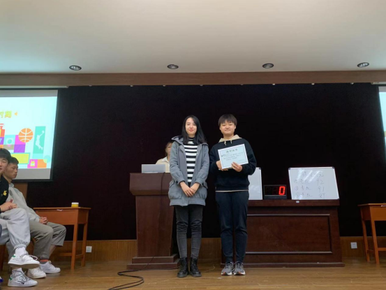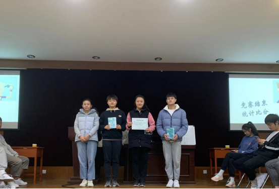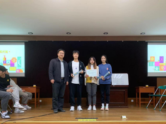 最后是颁奖环节,由于第四梯队的配合完美,在抢答、问答等各个环节都冷静应对,获得了本次比赛的一等奖;第五梯队和第六梯队在比赛中也凭借自己对体育知识的掌握,在本次比赛中荣获二、三等奖;姬周亿同学也因在比赛过程的优异表现,获得了本次比赛的最佳个人奖,分别由曹智超老师、毛丽旦老师和丁梦瑶老师为他们颁奖。
