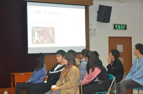 第一个环节为必答题,共18道题,各队轮流答3道题,每题3分,答错不扣分。面对激烈的比赛现场,同学们没有表现出丝毫紧张,他们意气风发、对答如流,场上氛围高涨,各个队伍之间比分不相上下,选手们一次次的精彩作答,赢得了现场观众的阵阵掌声。