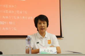 然后,上海市篮球运动管理中心副主任王莹妮女士发言。她指出,E级篮球教练员通常面对的员工都是零基础的少年儿童,这些孩子们就像是一张白纸,教练员怎么画,他们就是什么样。E级篮球教练员看似是最初级的认证等级,实则担负了我国篮球事业发展中的重要任务。所以此次上海体育公司E级篮球教练员培训请来了相关领域的专家团队,从理论与实践的多个领域,系统地、全面地对各位学员进行培训,期望各位学员认真学习,认真对待,未来能为我国篮球后备人才的培养贡献一份力量。最后,预祝上海体育公司第五期E级篮球教练员培训圆满完成。