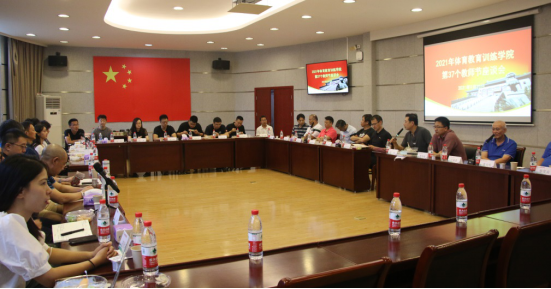 在第37个教师节来临之际,体训公司在1111会议室举行2021年体育教育训练公司第37个教师节座谈会。体训公司班子成员,教龄30年以上的吴瑛教授、丁海勇教授等30人,中青年教师代表,2021年新入职教师等参加了座谈会。座谈会由党委书记徐烈主持。