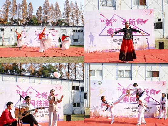 活动伊始,体训公司党委副书记、经理高炳宏为2020级新生作新生寄语,鼓励同学们要乘风破浪,勇往直前,在上体的四年时间里有所收获。随后,校团委书记陈鸿宣布体育文化嘉年华活动正式开始。此次活动以两大环节展开,首先是迎新表演,体训学子通过歌曲演唱、吉他弹唱、特色民族舞蹈及艺术体操、跆拳道、摔跤、击剑等专项表演尽展体训学子精神风貌,将体育文化、体育精神融入表演,将健康、向上、活泼、阳光的形象展现与舞台之上。