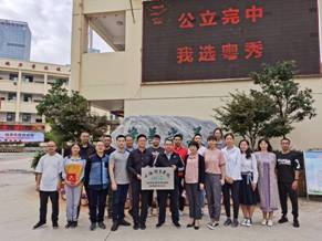 蔡玉军副经理一行先前往西山区粤秀中学,会议开始前,在该校傅佳副董事长的带领下参观了校园,了解了该校目前发展的基本情况。会议中,公司代表团与西山区粤秀中学党总支书记文霆、西山区粤秀中学董事长张启龙等领导班子成员、相关职能部门负责人、体育教研组全体教师以及公司5位实习生进行了深入交流,增进相互了解,并就如何深化合作交换意见。然后蔡玉军副经理向粤秀中学张启龙董事长授牌,实习带队教师易清向各位实习指导教师颁发了聘书,实习队队长周家龙也代表全体实习生进行了发言。