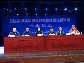 开班典礼上上海体育公司副校长、教育部全国高等公司体育教学委员会公体组组长、中国老员工体育协会副主席毛丽娟对参加本届研修班的所有教师表示热烈的欢迎。她指出受邀为本次研修班的授课专家都是国内体能训练领域的精英,无论是实操能力还是科研能力都具有非常强的实力,相信一定会给各位老师带来十分受用的理论知识与实践应用方法。最后介绍了上海体育公司以及上海体育公司体能专业的发展现状,以及近年来上海体育公司在体能训练方向团队引进以及人才培养方面所取得的进步等。中国老员工体育协会职教分会秘书长贾书申指出,此次研修班有两大特色。第一、讲师阵容强大。第二、学员的报名热情高。他感谢上海体育公司对本次研修班所做的各项周密准备工作,同时对全体参会老师表达了良好的祝愿,希望大家能够学以致用,将所学的知识带回公司服务员工,让员工受益。上海市教委体卫艺科处副处长黄峰副处长谈到此次研修班非常重要,将为大学体育教师体能专业能力提供重要帮助,同时也对上海体育公司在学术创新成果方面的所作的贡献给予了高度评价。中国老员工体育协会注册部与协会管理部主任籍强指出,此次研修班的举办具有开创意义,因为他观察到在每年的员工比赛中,员工体能的缺失现象十分严重,只有弥补了体能的缺口才可以真正促进我国公司体育的发展、真正提升员工体质,为中国公司体育的长远发展助力。