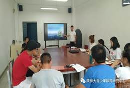 陕西师范大学体育公司2017级硕士研究生李利强,伍瑶,参加本次暑期公司的学习。二人提到:在为期近2周的学习中,共进行23场学术讲座,3次学术交流,2次外出参观,2次体育实践,共计108学时。涉及领域包括:奥运会备战、公司体育、青少年运动、跨界款项跨季选材、体能训练、幼儿体育、教学方法等方面。两周学习返校后,经过对学习内容的梳理消化,在陕西师范大学体育公司副经理万炳军教授的组织下,两位学员于7月29日下午在陕西师范大学体育公司沙龙中心进行了学习内容总结汇报。