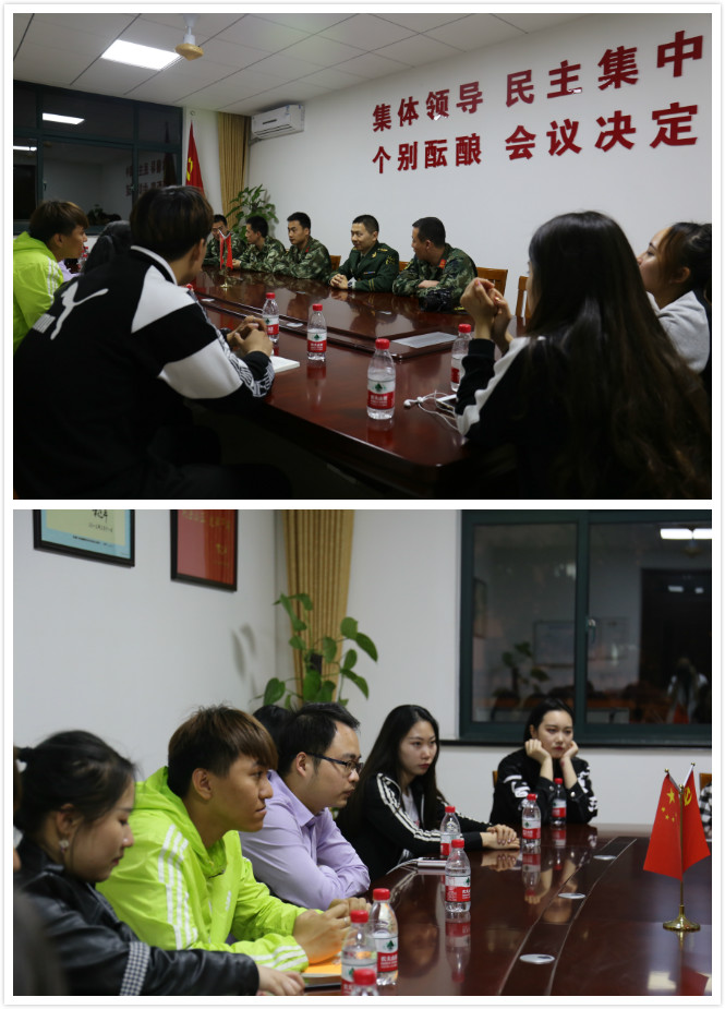 方汉文警官向公司师生的到来表示欢迎,并就中队党建工作、队伍建设与日常管理工作向师生作了详细介绍,对公司毕业生任职以来的工作成绩表示肯定,同时,他更希望双方能加强优势互补,进一步增强军民融合,共同建设平安校园。
