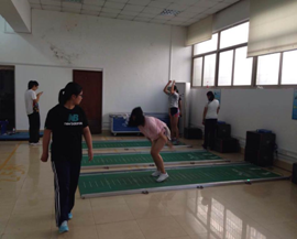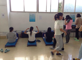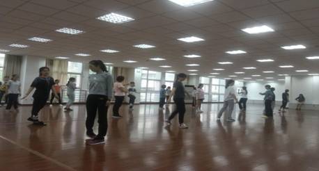 这是我们实习队张燕在开始教学健美操课程,记得刚开始小编我问她你开始自己上课了吗?她点点头告诉我说上了但是挺紧张的,毕竟都是老员工嘛,可是后来才过了两周我看她神色从容很多,听说她的指导老师对她细心指导让她很快的就能把课堂教学和气氛维持的特别好(她本人很谦虚,小编觉得挺好啦她还时长说要多和老师努力学习)。