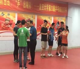 第三周实习队员在做复旦大学第23届乒乓球院系杯裁判工作