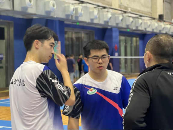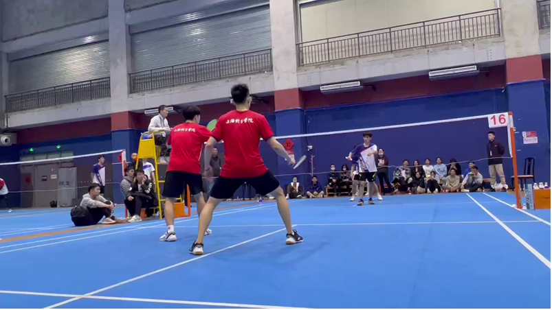 进入1/4决赛,对手是东华大学,前两场1-1战平的情况下,二单王芃顶住了压力,以21-18险胜对手,艰难挺入四强。在半决赛中,我们面对的是连续两届的男团冠军得主上海大学,第一单0-2告负,双打和二单都在先赢一局的情况下被对手拖入到决胜局。双打谢智威赵烽均从之前失败的阴影中走出,二单王芃顶住了对手的反扑,均以2-1战胜对手,成功涉险进入决赛。