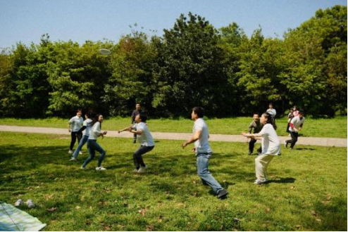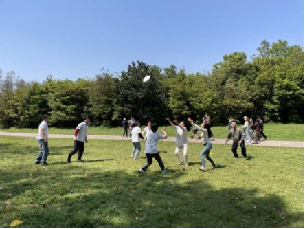本次踏青活动得到了“引力飞盘”的大力支持,李杨老师为大家讲解飞盘运动的技术要领和游戏规则。飞盘运动是一项无身体碰撞的对抗型竞技运动兼具观赏性和运动性,能达到锻炼身体和减压放松的效果。同学们学习正手、反手投掷飞盘的技巧,然后分组练习,在基本掌握了飞盘技巧和规则后,为了更好体验飞盘运动的乐趣,大家还进行了一场激烈的飞盘比赛。