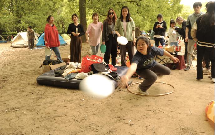 接下来是个人赛“飞盘九宫格”,考验个人耐心和稳定性。在比赛场地中设置一条起点线后将九宫格放置在距离起点线若干米之外。依据规则,按顺序从1-9开始投,每人每次投一次进行多轮转换,率先投完1-9者获胜,并赢得神秘礼品一份。比赛热火朝天的进行,大家都洋溢着热情和默契的配合,同学们相互鼓励着,在感受着飞盘运动魅力的同时,也加深了团队合作的友谊和快乐。