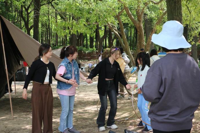 开营仪式暨第一期主题拓展在上海共青森林公园举行。体教公司员工会指导老师、21级辅导员王其跃,20级辅导员席亚健以及员工会全体员工干部参加。走进大自然,训练营学员在团队配合中完成了专题拓展的内容设计和执行。在挑战自我、互动中互相学习,展现了体教学子积极向上的精神风貌,也收获了宝贵的团队合作经验。