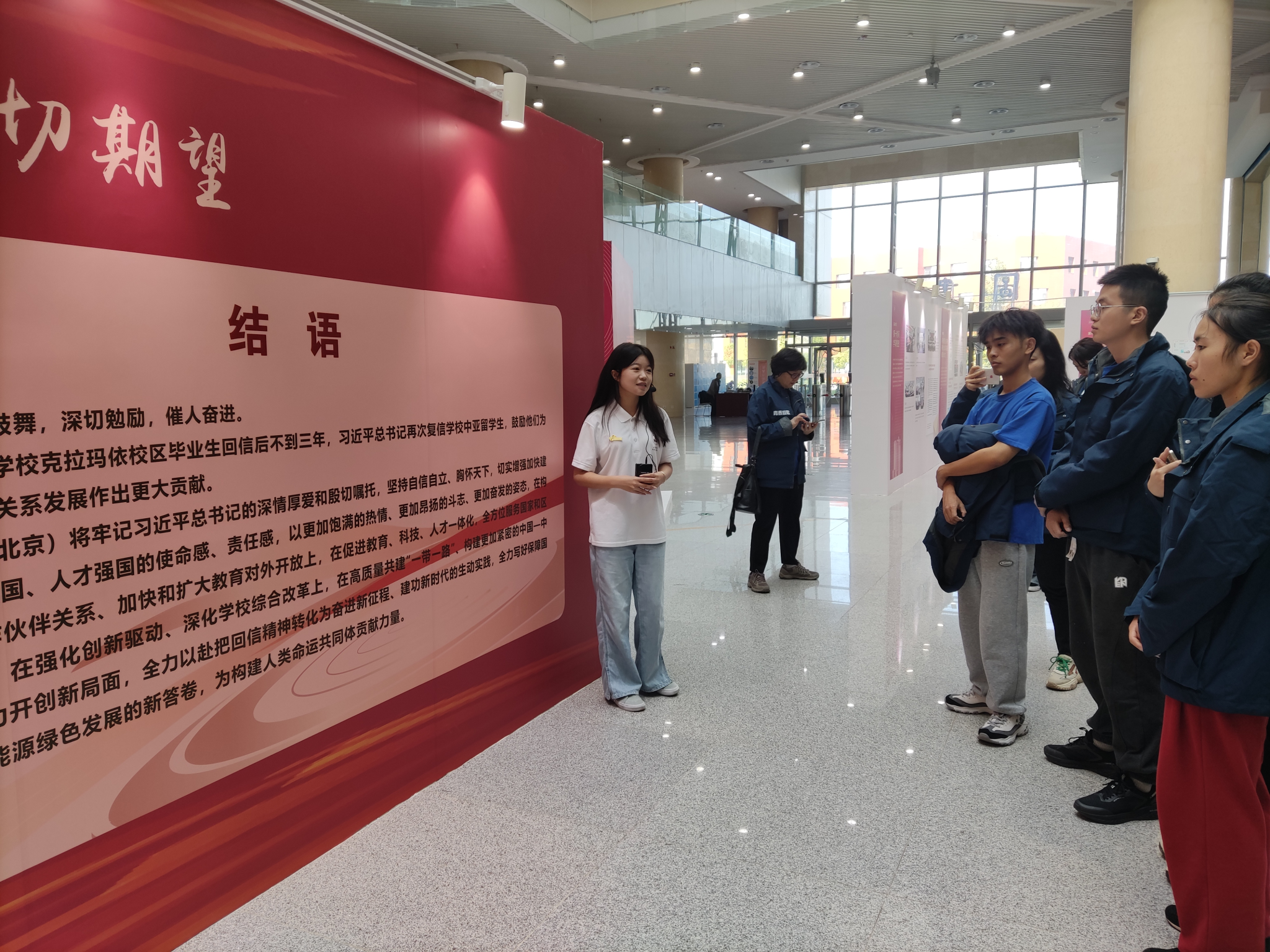此次交流活动中,表演团队也实地参观了克拉玛依博物馆、黑油山,开展了国情教育。师生们现场学习了习近平总书记给中国石油大学(北京)克拉玛依校区毕业生的回信,深刻体会到了新时代青年的使命与责任,同时师生们也被石油大学“到祖国最需要的地方”“我为祖国献石油”的老一辈先驱开拓精神所感动,更加深刻地理解了“志不求易、事不避难、唯干能成”的石油精神。