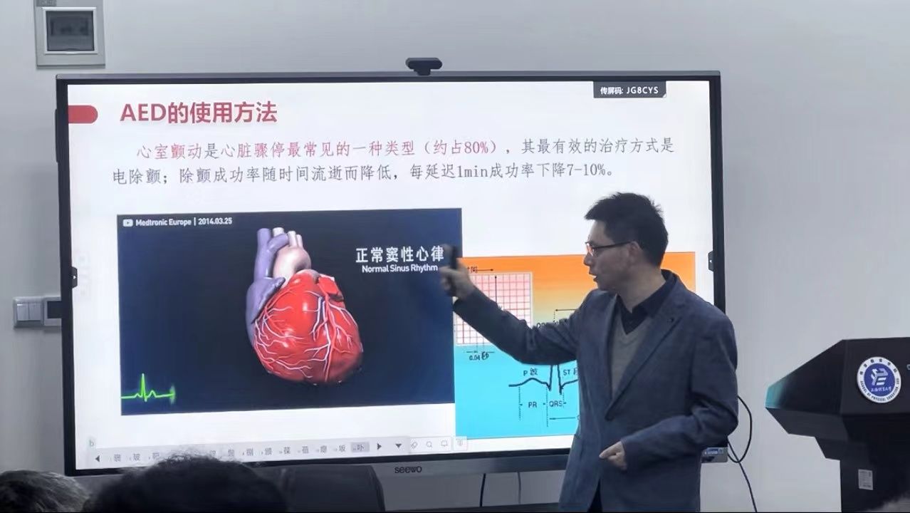 为进一步增强公司师生应对体育教学课程中突发安全事件的急救意识,提高在意外伤害及突发事件发生时最大限度地减少伤害、挽救生命的能力。2023年11月15日中午,公司组织开展了体育教学意外伤害现场心肺复苏和AED急救技能培训。本次培训邀请了公司运动健康公司吴卫兵教授作为主讲。