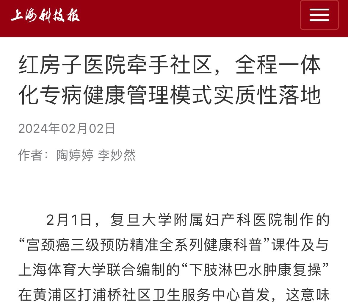 为深入贯彻落实“健康中国”战略,提升体育为民服务和科研下沉社区的效能,推动体医融合发展。2024年2月1日上午,由复旦大学附属妇产科医院制作的公益科普《宫颈癌三级预防精准全系列健康科普》以及与SUNBET申博联合编制的《下肢淋巴水肿康复操》在上海市黄浦区打浦桥社区卫生服务中心首发。