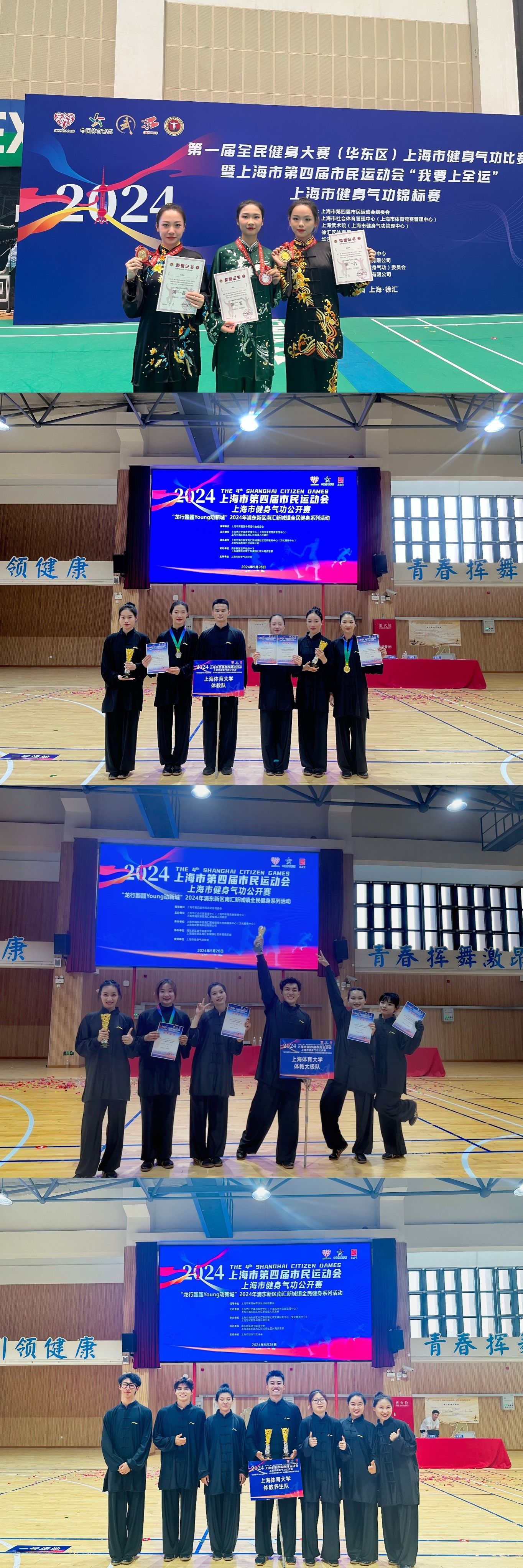 一周前的2024年5月26日,传统养生队同学首次参加了2024年上海市第四届市民运动会——上海市健身气功公开赛,在该次比赛中取得了集体项目3个一等奖、2个二等奖和1个三等奖,以及个人项目2个第一名、2个第二名和1个第三名的成绩。