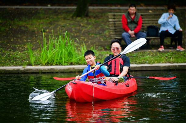 六一儿童节期间,开展皮划艇趣味体验活动,让孩子们在公园清澈优美的水面上,感受到运动带来的无限惬意和畅快。