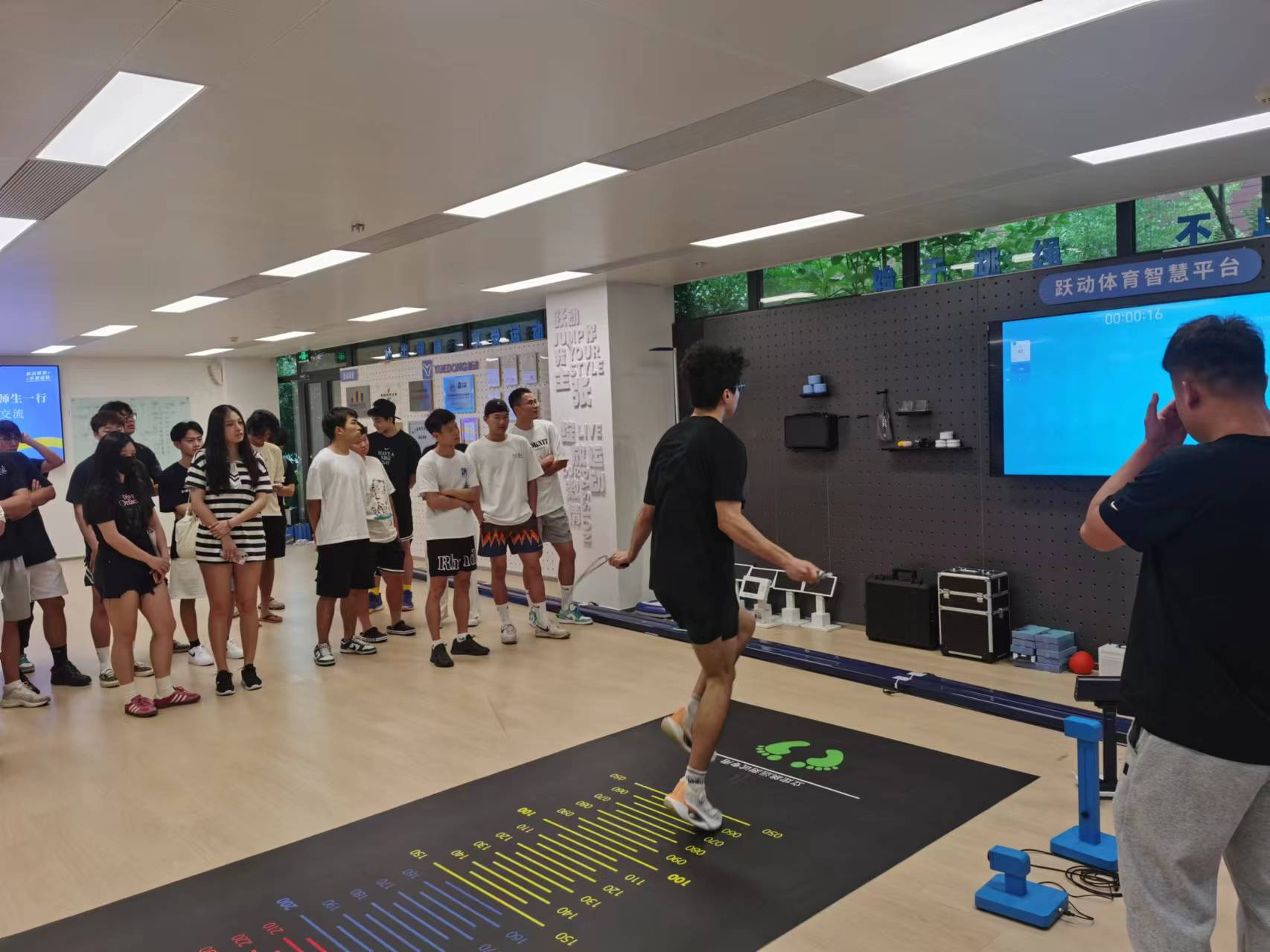 随后,师生们参观了位于海尚园区的体育产业创新中心,调研了众多体育细分赛道优秀企业。上体科技园体育产业创新中心被誉为“永不落幕的体博会”,全方位地展示了中国多个体育场景中领先的技术、产品和经营模式。在园区工作人员的专业介绍下,同学们现场体验了AI+、VR+体育产品,真切感受了体育赛道科技创新的魅力。
