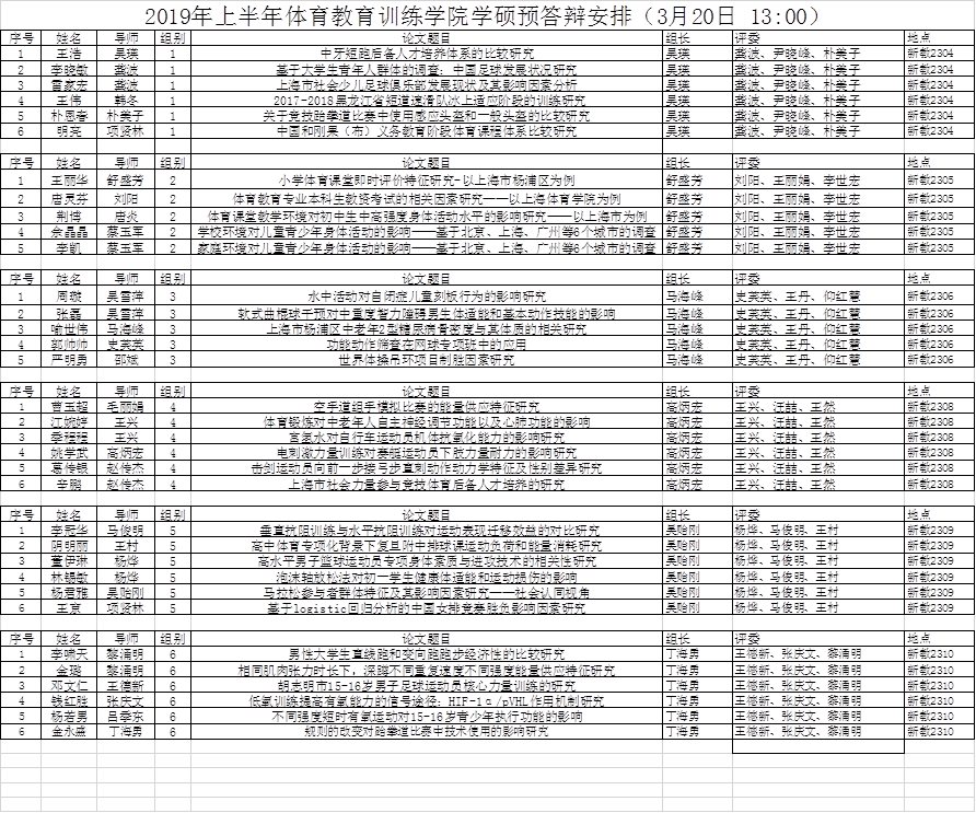 2019年上半年体育教育训练公司学硕预答辩安排