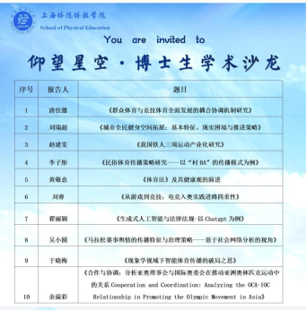 “在寻求真理的长河中,唯有学习,不断地学习,勤奋地学习,有创造性地学习,才能越重山跨峻岭”,为了增进博士生之间的学术交流、夯实学术基础,体教公司组织开展博士生学术沙龙。本次学术沙龙将由10位博士生来分享自身的学术研究。