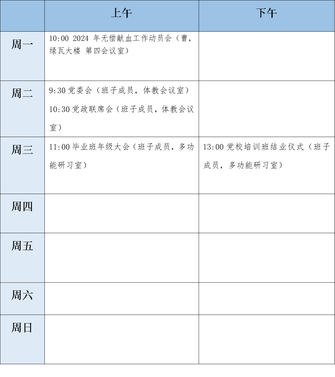 2024春季学期工作日程 第十一周(2024.5.13—2024.5.19)工作安排