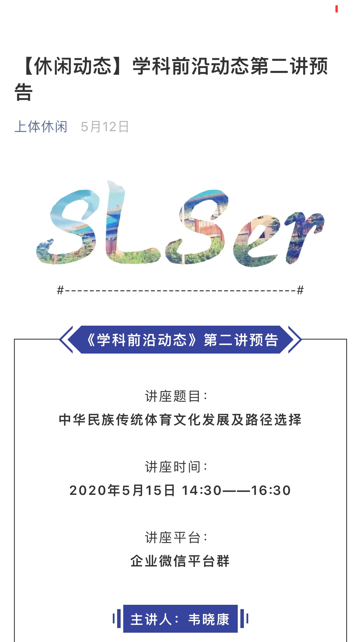 学科前沿动态第二讲预告